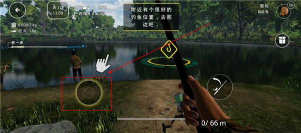 4、右边的按钮是抛竿,寻找到合适位置后点击此键抛竿即可